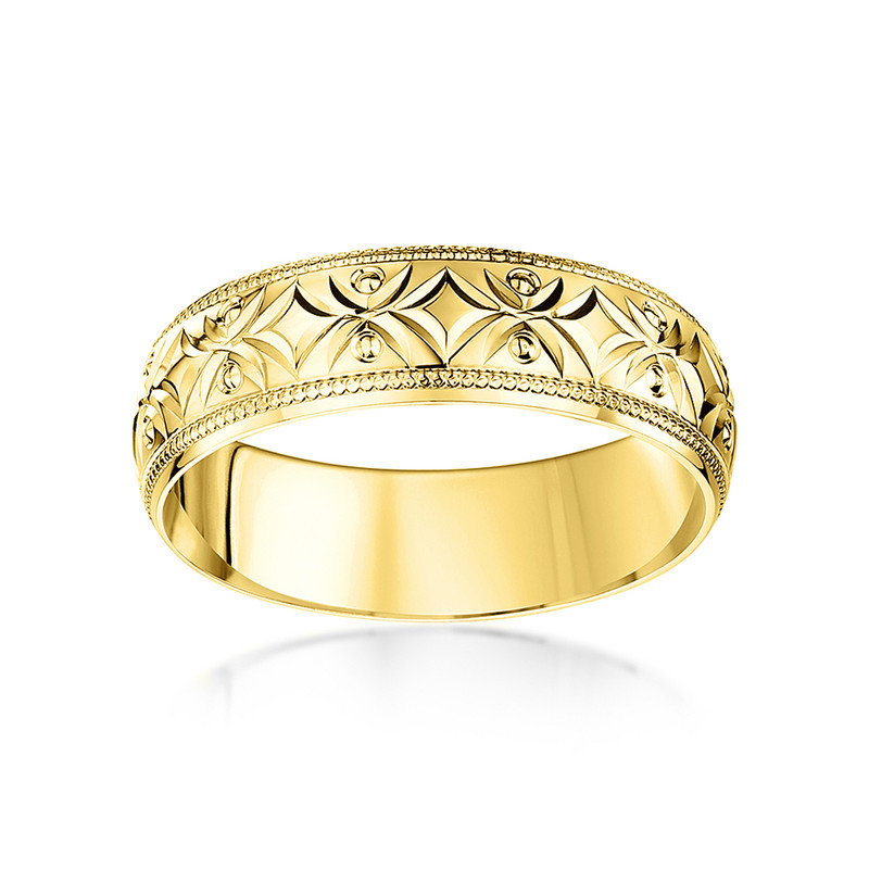 18ct Yellow Gold Diamond Cut Patterned Wedding Ring