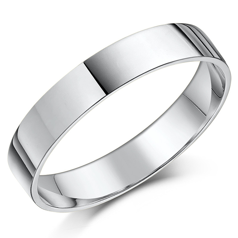 4mm 9ct White Gold Heavy Flat Court Wedding Ring