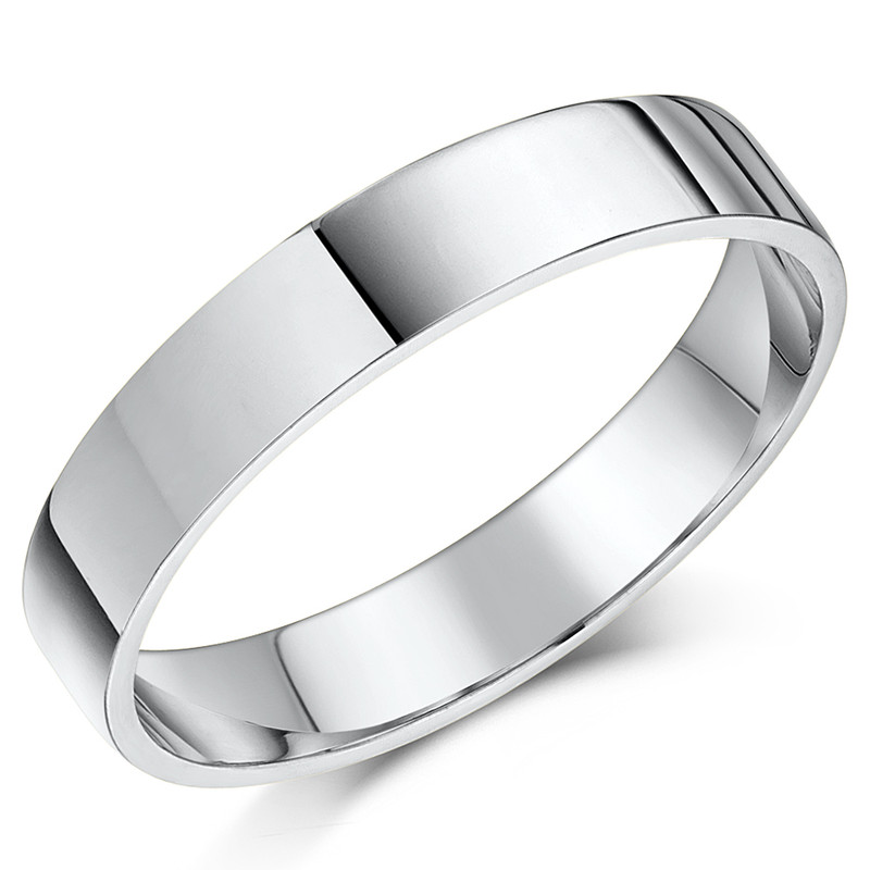 4mm 9ct White Gold Heavy Flat Wedding Ring